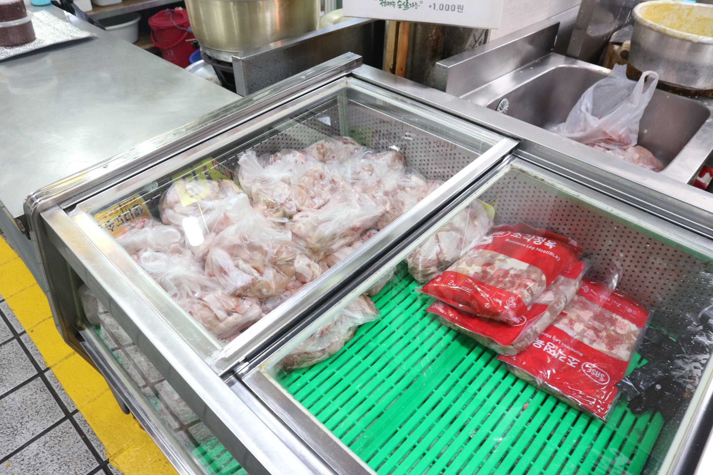 오늘 판매할 양의 닭들이 냉장고에 잔뜩 들어가있다.