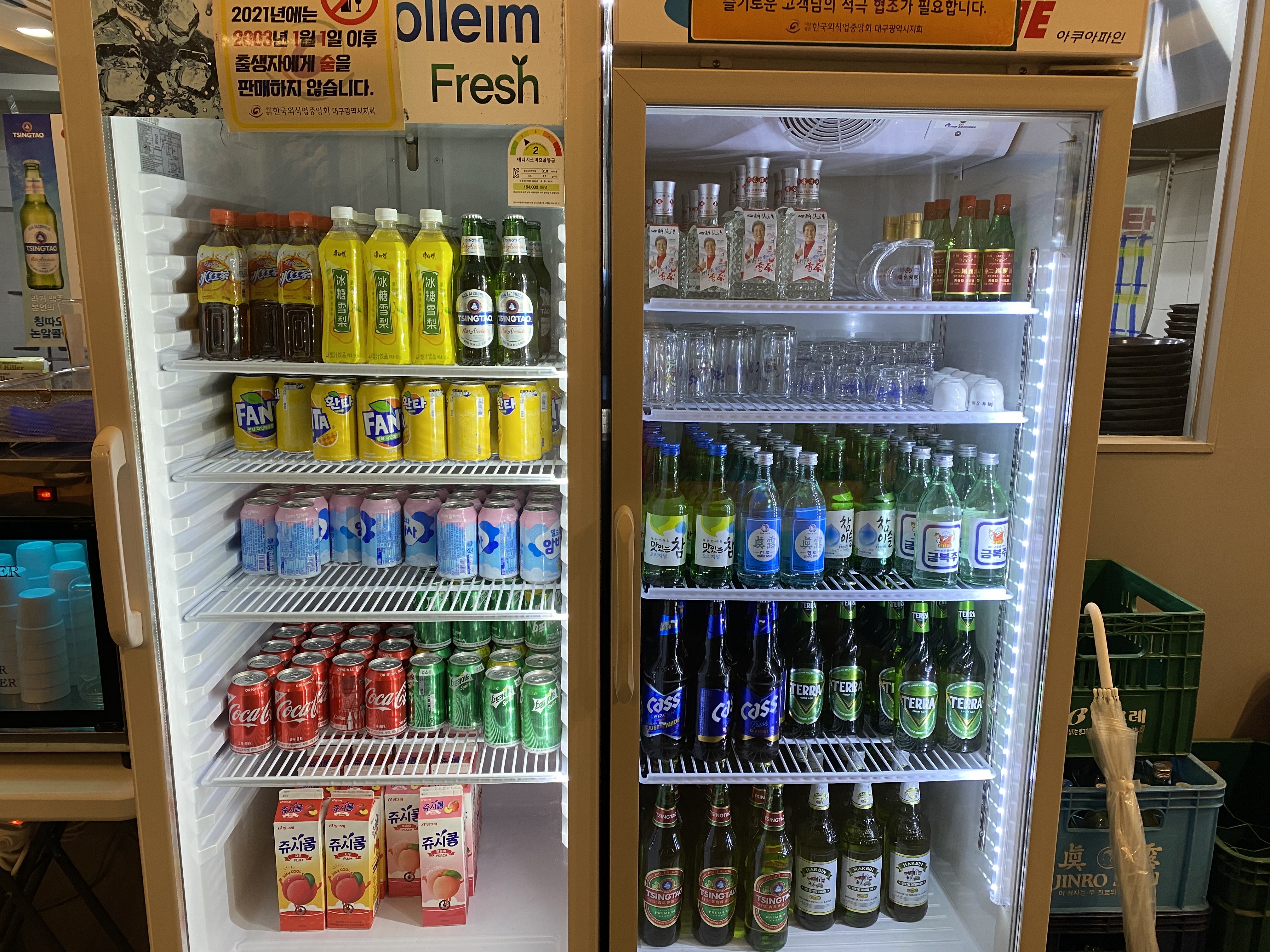 음료와 술도 있는데 나는 맵찔이니까 왼쪽 냉장고의 제일 위 제일 왼쪽에 있는 아이스티(?) 같은 음료를 구매했다. 하나에 3천 원 저렴한 가격은 아니지만 다른 가게도 다 이 정도 하긴 하도라...